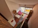 Il se compose d’une pièce à vivre extrêmement lumineuse avec kitchenette équipée et grande baie vitrée, une chambre en mezzanine, une cabine avec lits superposés et une salle d’eau avec WC.